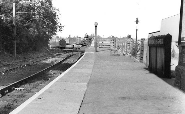 Looking north-east from Newport Pagnell station c. 1960s. The raised part of the platform
