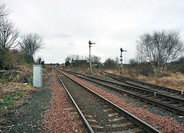 ![]() In March 2009 the track arrangement at the junction with the Blyth branch has been radically simplified with all the sidings being lifted.