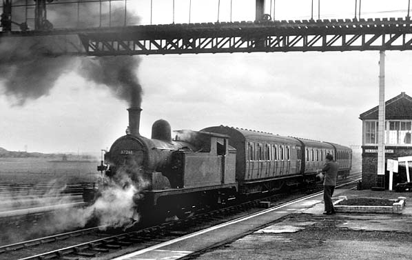 A push-and-pull working is propelled southbound from the up platform at Newsham c1955.