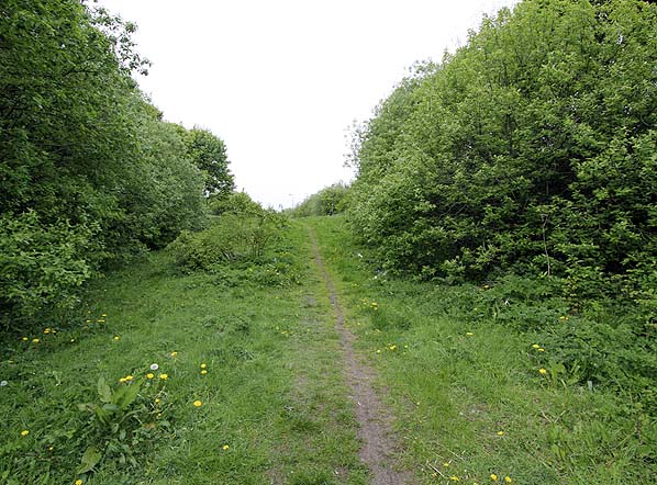 ![]() The cutting at Newtongrange station has been filled up to footbridge level at this point to allow a footpath to cross the track bed. (May 2011)