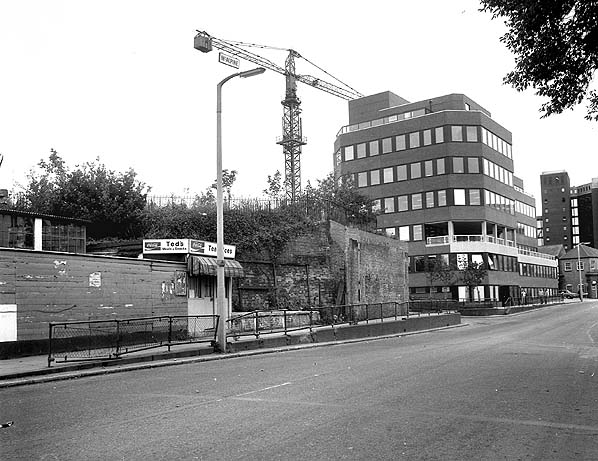 Bridge abutment in Station Road, Wood Green in May 1981. This has now gone.