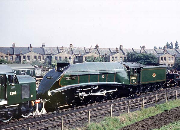 'Mallard' at an exhibition of locomotives and rolling stock in Noel Park goods yard between 12th and 14th September 1958.