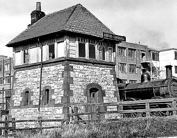 ![]() The signal box at North Lonsdale is seen c1960 in a derelict state.
