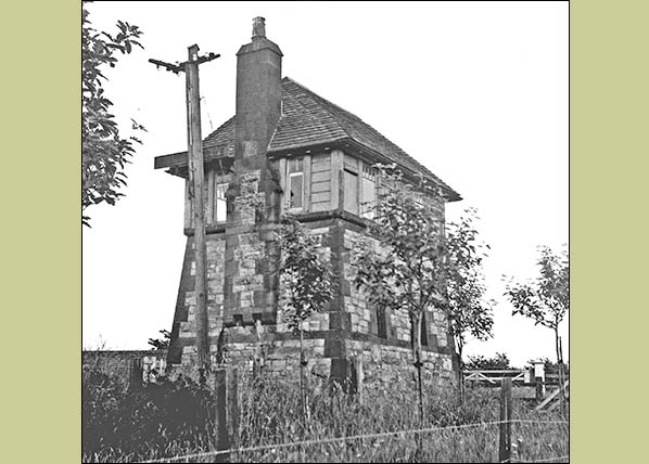 ![]() North Lonsdale signal box looking south-east c 1960. The striking design of this structure can be appreciated, including the detail of the chimney flue with its dark, smooth quoins to contrast lighter rock-faced stone of the wall from which it projects.
