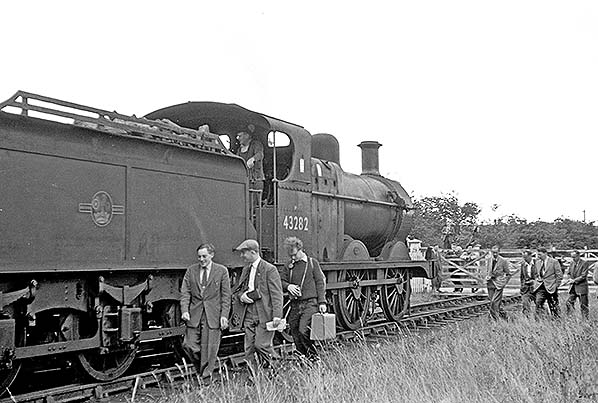 Photo by D J Mitchell ![]() Another view of Johnson Class 3F 0-6-0 No.43282 on the ‘Furness Railtour’ of 27 August 1961 at the site of North Lonsdale Crossing station. It was commonplace for railway enthusiasts in the ‘pre-anorak’ era to dress smartly for such occasions: a suit or sports jacket and ‘flannels’ and possibly a tie were considered appropriate for the men. Women and even young children were seldom seen on these excursions. In the days before obsessive health and safety concerns enthusiasts were trusted to walk on the trackbed and adjacent land and even to clamber up signal box ladders and scale walls to obtain vantage points for photography. We can be grateful that such behaviour was permitted because many valuable photos were taken which we can now enjoy.