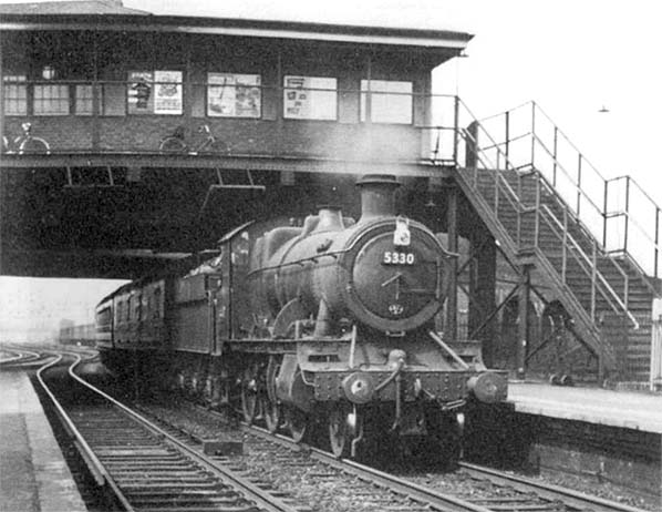[Source: Dave Marden] 4300 Mogul Class No. 5330 arriving at Northam Station in c.1950's. 5300 and ten other examples of the class were transported to France during World War I in the service of the Railway Operating Division of the British Army