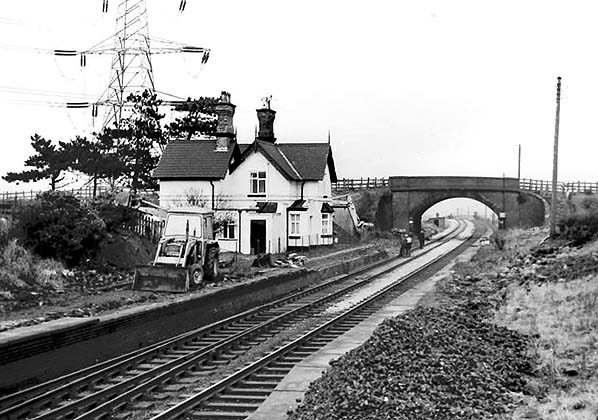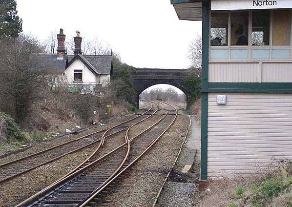 ![]() Wrong line working at Norton station during engineering works in 1947. Photo by Roy Gough ![]() Looking north-east from the signalbox at Norton station c. 1970/1. Work had started on the demolition of the stations platforms. By the time this photograph was taken over half of the length of the down platform had already been removed.
