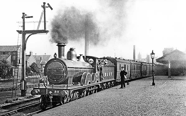 ![]() Photo from John Mann collection ![]() This view is similar to the previous but the man standing on the signal bracket tells us the two photographs were taken a few minutes apart. The locomotive is outside cylinder 0-6-0T No.98, originally No.14A, from a class of nine which the M&GN classified simply as 'Shunting'. The M&GN initials are placed either side of the numberplate i.e. ' M & - numberplate - G N' and the M&GN crest was located above the numberplate. The crest is just visible in this view and while photographs of these locomotives are not rare, very few show the crest with any clarity. The history of these locomotives is rather intriguing and confusing. Their origin was the Cornwall Minerals Railway ('Minerals', i.e. plural, being correct) which had eighteen examples. Of those nine ended up in GWR stock converted to saddle-tanks and of the remaining nine, some ended up with the Colne Valley & Halstead Railway and some with the M&GN apparently via the Lynn & Fakenham Railway. It is thought just three of the Cornwall examples came to the M&GN but mystery surrounds which three and the origin of the remaining six. The M&GN examples went on the become LNER Class J93 and three survived, just, into British Railways days but were never to receive their allocated BR numbers. No.98, which was the oldest example and dated from 1897, was not among the late survivors, being withdrawn by the LNER in January 1947 as No.8482.
