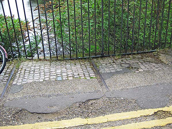 A siding extended for a few hundred yards south of Norwich City station, leaving the station on its east side and crossing Station Road before running alongside the River Wensum to end at New Mills Yard. There a very short jetty extended into the river at its highest navigable point. Although the jetty has long gone, two sets of rails went onto the jetty and the remains of both pairs can still be seen in May 2018. Anecdotal information suggests that, amongst other cargoes, locomotive ash from the engine shed was sent by river for disposal.
