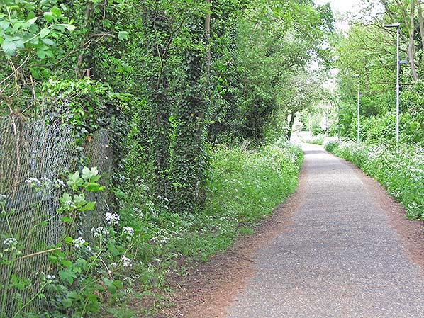 On the right hand side of this picture was the location of North signal-box that controlled the approach to Norwich City station but closed in 1932 as an economy measure. The cycle-track occupied the running line and, to its left, two head-shunts allowed traffic in the goods yard to be shunted without fouling the single main line. May 2018.