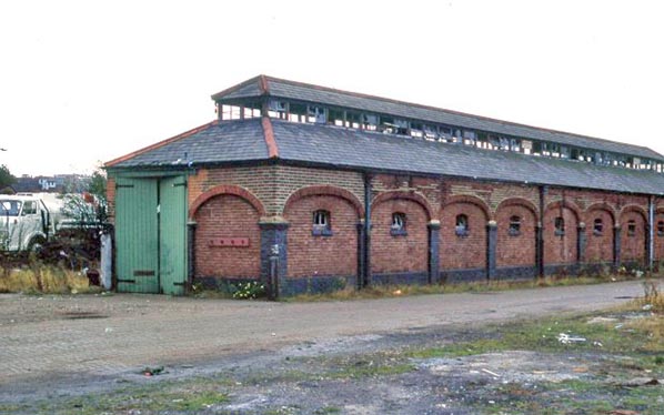 Photo copyright Gill Wright ![]() Entrance to the coal yard in Heigham Street in 1972. The water tower stood at the end of the coal sidings. Sections of the boundary wall can still be seen in Heigham Street in front of Pickford's warehouse. Photo by Joe Mason from his blog for memories of East Anglia ![]() The stable block at Norwich City in 1972.The picture was taken shortly before the contractors moved in to clear the goods yard site which is now Barker Street. The building can be seen in two of the 1949 aerial views.