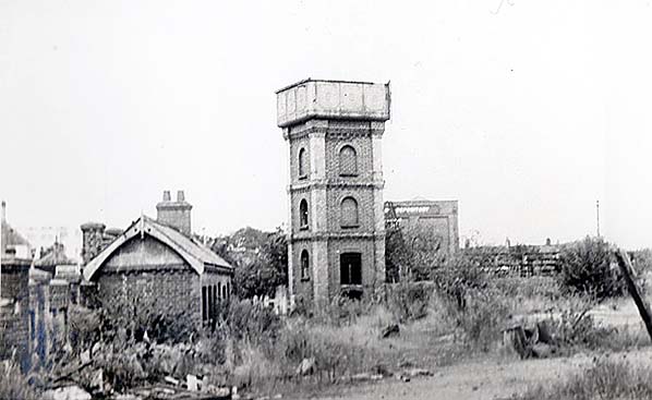 Photo by Joe Mason from his blog for memories of East Anglia ![]() Norwich City station had two water tanks mounted on brick towers. The larger one was sited alongside the engine shed road to the north of the passenger platforms. This smaller tower was sited at the south end of the coal yard. It is visible on one of the 1949 aerial photos. Pickford’s warehouse is seen in the background