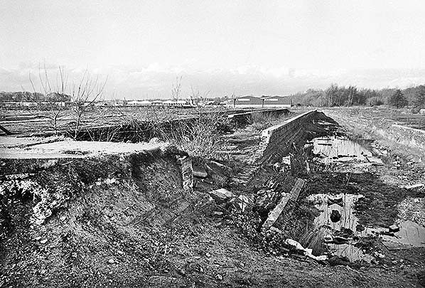 ![]() When this photograph was taken in January 1977 the site of Norwich City station had been extensively cleared for redevelopment. The remains of the bay platforms and buffer-stops were still in place. The east side platform facing, on the right of the image, has survived to some extent and was dug out by the Friends of Norwich City Station after 2011