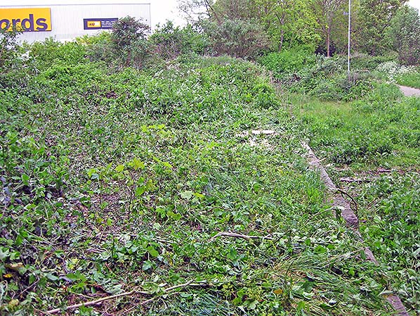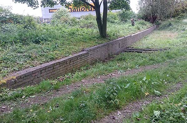 Photo by Glen Kilday Around 2012 ‘The Friends of Norwich City Station’ carried out some investigative work at the site and uncovered some surviving remains of the station. This is the facing of the east-side bay platform as it was in May 2018, with nature again taking over.