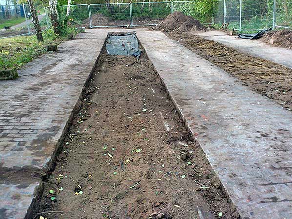 Photo by Ashley Dean, reproduced from Geograph under creative commons licence ![]() Photo from Norwich City Station Preservation Group / FONCS ![]() The dug-out remains of the east bay platform at Norwich City in the summer of 2012. A couple of abandoned sleepers have been uncovered.