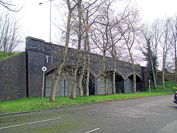 ![]() Station Name: NORWICH VICTORIA![]() The bridge arches at the station throat at Norwich Victoria have been infilled and bricked-up. The road above is no longer on a bridge and the other parapets have gone.