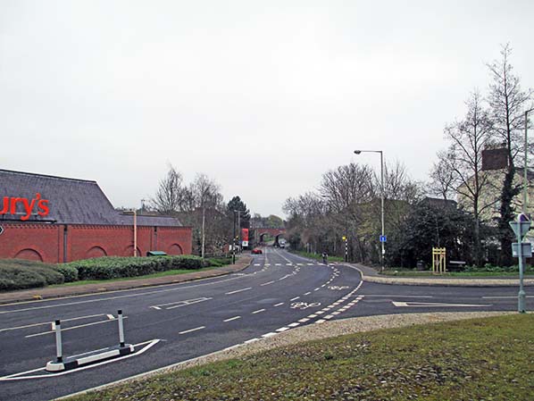 ![]() Station Name: NORWICH VICTORIA![]() This was the scene in April 2018 looking along the infilled line towards Upper Trowse Junction from the former bridge where trains entered Norwich Victoria station.