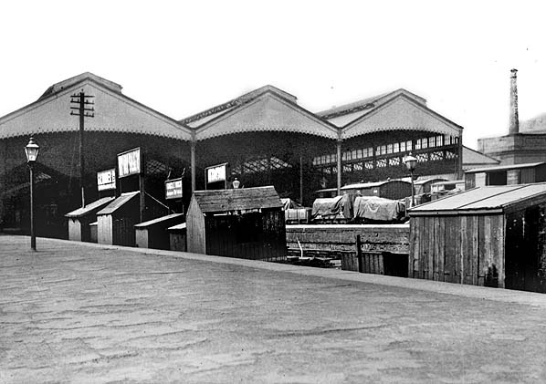 The platforms were at first partly sheltered by a short four-bay iron-roofed trainshed, but the GNR lengthened this with three wider bays. They had curved wooden gable screens and clerestory sides which overlooked sloping canopies above the side platforms. Typical GNR features were the four-way floral iron brackets and serrated valances.