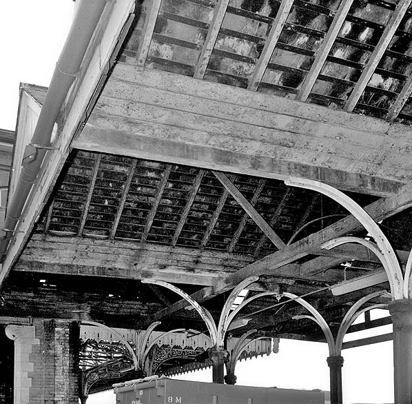 ![]() Station Name: NOTTINGHAM LONDON ROAD LL [Source: Nick Catford] ![]() Nottingham London Road Low Level station canopy of the external goods dock on the south side of the station in December 1980.