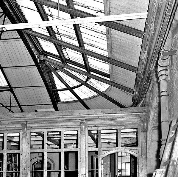 Nottingham London Road Low Level station - concourse roof detail in December 1980.