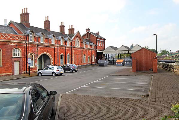 ![]() Station Name: NOTTINGHAM LONDON ROAD LL [Source: Nick Catford] ![]() Nottingham London Road Low Level station, the west face of the range of buildings in July 2014. The vehicle entrance into the goods shed is to the left of the canopy. Photo by Nick Catford