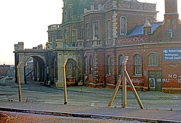 Nottingham London Road Low Level station forecourt in December 1983.