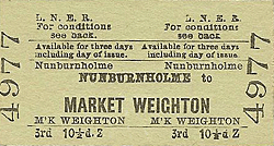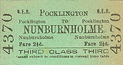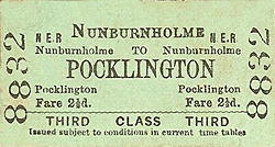 Tickets from Michael Stewart, Bradshaw from Chris Hind, route map drawn by Alan Young. To see other stations on the Earswick, Warthill, Holtby, Stamford Bridge, Fangfoss, Yapham Gate, Pocklington, Londesborough Park, Londesborough, Market Weighton, Kipling Cotes, Cherry Burton |