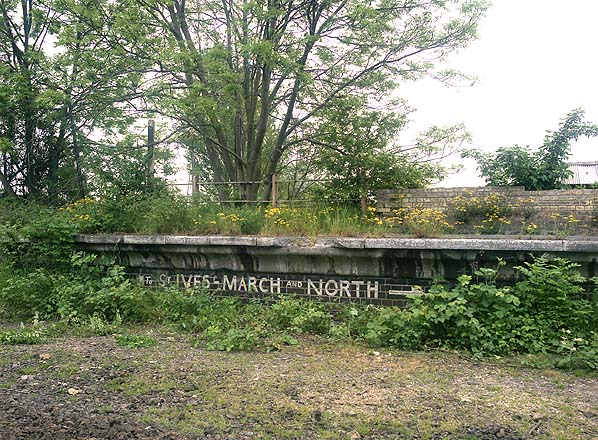 Lettering on the side of the up platform at Oakington Station in July 1991