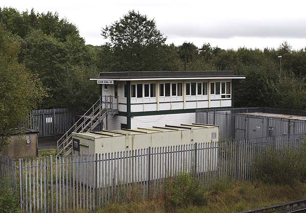 ![]() The 1967 signal box at Oldham Mumps station in September 2009. Photo by David Warby from his Lost Lines web site