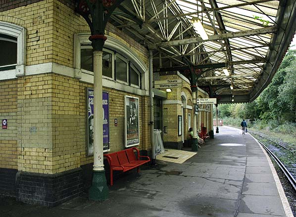 ![]() Oldham Mumps station looking north east along the up side of the island platform in September 2009. Photo by David Warby from his Lost Lines web site