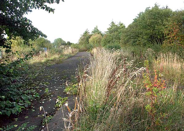 ![]() Yhe northeast end of Oldham Mumps Station in October 2009. Hidden in the vegetation on the right side of the picture are the infilled remains of a bay platform. Photo by Bevan Price