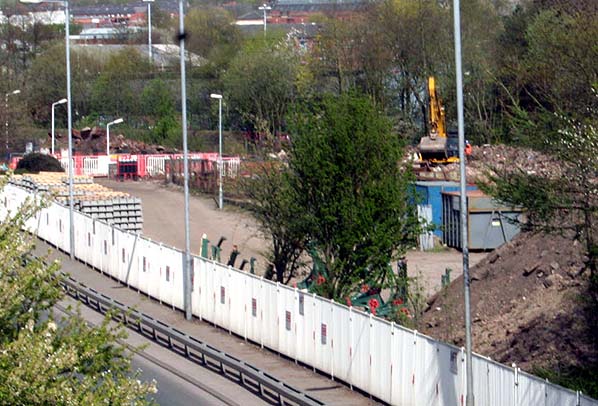Looking east across Oldham Way (A62) towards the site of the Oldham Mumps station entrance in April 2010. Photo by Bevan Price