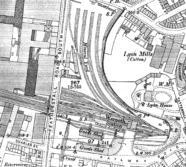 Between 1880 and 1895 the LYR altered Oldham Werneth station. The overall roof was removed and replaced with canopies that covered the full length of each platform. Single-storey brick buildings providing waiting rooms and staff facilities were also constructed on each platform, at the west end of the station. As the junction between the Middleton and Thorpes Bridge |