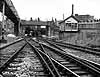 Extensive goods facilities were developed on both sides of the station, with sidings, stables and coal offices to the north, and two goods sheds and a 10-ton crane to the south. The yard to the south was in a very confined space, and one of the goods sheds could be reached only by using turntables.