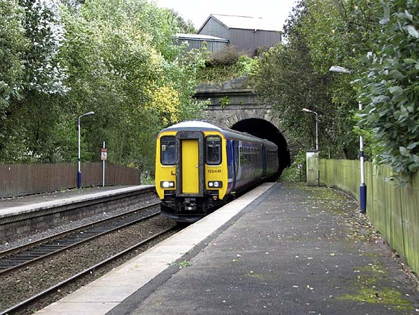 ![]() A Class 150 DMU arrives at Werneth station on 3rd October 2009, the last day of public service.