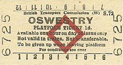 An Aberystwyth to Whitchurch train is seen on the left while the Gobowen shuttle stands in the bay platform at Oswestry Station in c.1962
