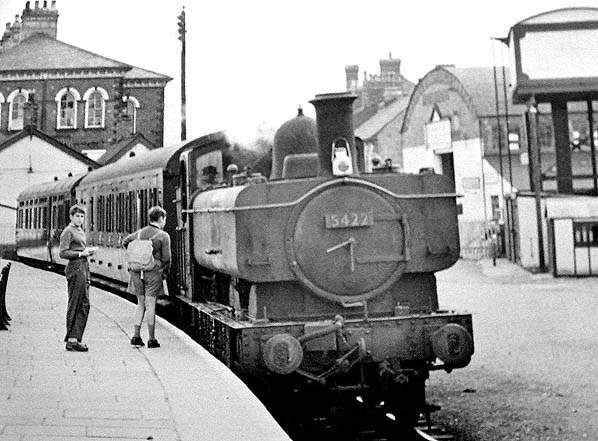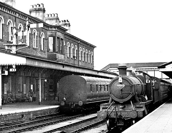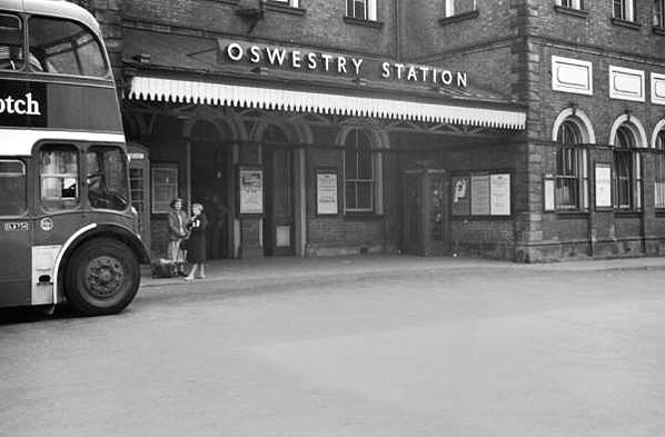 A Gobowen shuttle service seen in the bay platform at Oswestry in August 1959.![]() A mixed goods train is seen passing through the up platform at Oswestry station in July 1960. The 3.08pm Oswestry to Gobowen service is seen departing from the Oswestry station bay platform on 8 August 1962. A Witchurch service can be seen at the up platform Photo by S D Wainwright ![]() The main entrance to Oswestry station seen in the early 1960s. Looking south along the up platform at Oswestry station in 1962. To the left is an Aberystwyth to Whitchurch train and to the right the Gobowen shuttle can be seen.Photo by Robert Donaldson Home