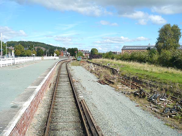 Photo by Paul Wright ![]() The down platform at Oswestry station seen in February 2006. Photo by Paul Wright Looking south-west along the up platform at Oswestry station in February 2006. The bay platform that had been added in 1924 was to the right.Photo by Paul Wright Oswestry station seen from the road in October 2008.Photo by Row17 from Geograph, reproduced under creative commons licence ![]() Looking north-east along the up platform at Oswestry station on 9 June 2013. Photo by Paul Wright ![]() Looking south-west along the up platform at Oswestry station on 9 June 2013 after the Cambrian Heritage Railways society had restored it. Photo by Paul Wright Oswestry station seen from the south end of the up platform on 28 June 2013.Photo by Paul Wright ![]() Looking south-west from the north end of Oswestry station's up platform on 28 April 2016. The Gobowen bay platform had been to the right. Photo by Paul Wright ![]() Restoration works were ongoing when this view of Oswestry station was taken on 28 April 2016. Photo by Paul Wright Members of the Cambrian Heritage Railways society are seen working at the south end of Oswestry station on 28 April 2016.Photo by Paul Wright ![]() The Oswestry station goods shed looking west on 17 September 2016. Photo by Paul Wright ![]() Oswestry station seen from the street on 17 September 2016. Photo by Paul Wright ![]() A new running in board station sign had been installed on the up platform at Oswestery on when this view was taken on 17 September 2016. Photo by Paul Wright