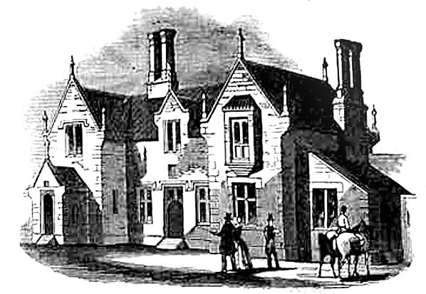Oundle station in 1845, shortly after opening.