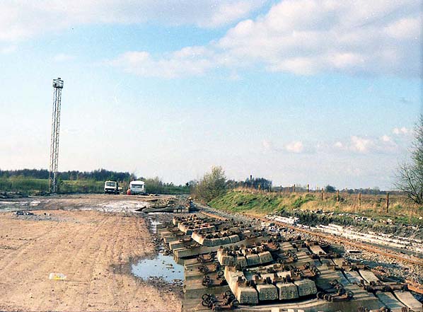 Over & Wharton station looking north during track lifting in March 1991