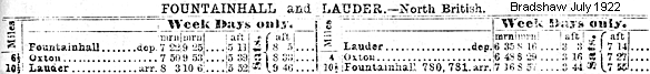 Although most passengers travelled to Edinburgh, the line was unable to attract many commuters. The first train left Lauder at 6.15am, which was too early for commuters to the city, although its return journey from Fountainhall was very convenient for bringing back mail, parcels, perishable goods and newspapers. There was clearly a demand for a later departure, with a connection at Fountainhall that would allow commuters to reach the capital at the start of normal business hours. The second train left Lauder at 9.30am, but the connection did not arrive at Edinburgh until 12.58 pm. Nothing was done to improve the service which remained largely unchanged until WW1.