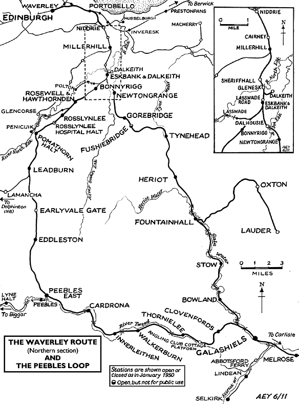 Once again Lauder was in festival mood as the first train pulled out of the station at 6.20 am with 62 passengers on board, and a further 51 joining at Oxton. There were numerous special excursions along the line during the first week, but once the euphoria had died down the railway settled down to four daily return services between Lauder and Fountainhall, where there were onward connections to Galashiels and Edinburgh. The 10-mile journey was completed in 47 minutes. There was no Sunday service.
