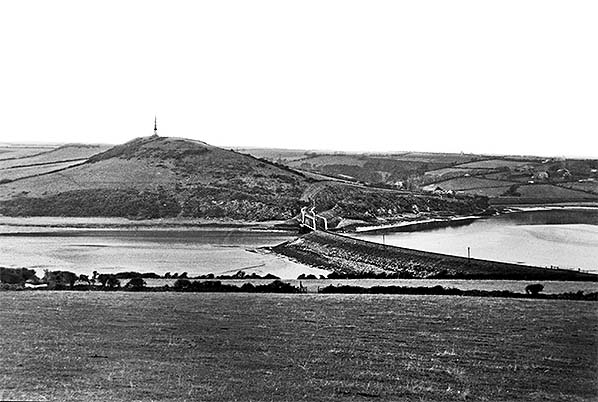 ![]() View north across Little Petherick Creek towards Padstow in the 1930s. Dennis Hill overlooks the town. The granite obelisk on the summit of Dennis Hill was erected in 1889 to celebrate Queen Victoria's Jubilee of 1887. Little Petherick Creek Bridge is seen in the centre.