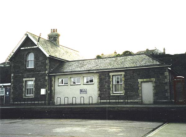 ![]() The stationmaster's house and offices in January 2000. At this time the station building is being used by Padstow Town Council. All windows and doorways have been permanently blocked with the council chamber located in the former booking office and waiting room. Presumably the high windows are to stop passers-by peering into the council chamber during meetings.