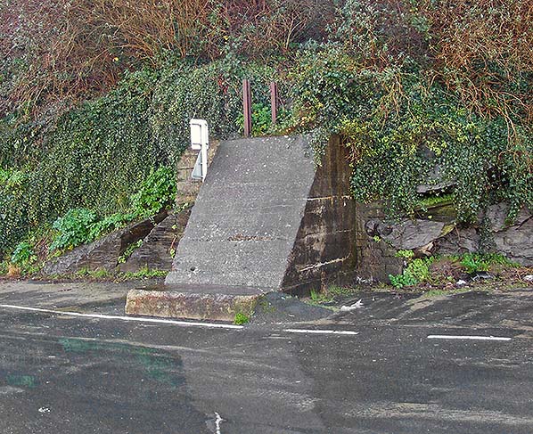 ![]() This concrete structure is at the bottom of the cliff roughly opposite where the goods shed stood. It is not known if it had any railway connection. It could also have been from WW2.