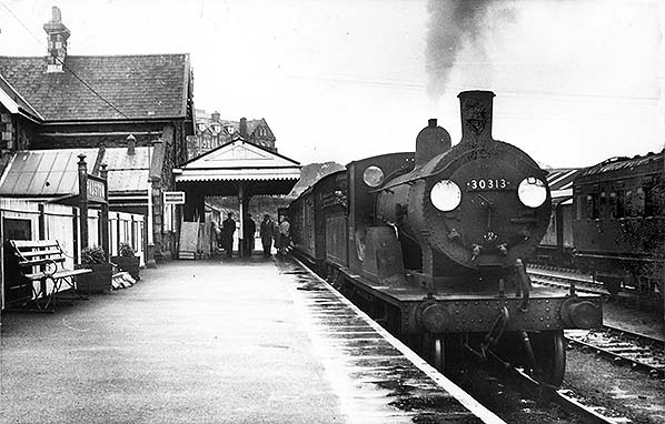 Photo from John Mann collection ![]() A rainy Padstow in April 1961 and Drummond T9 No.30313. This locomotive has been described with another image elsewhere. Although appearances suggest a single-carriage train, it is a Maunsell 2-car set but the set number is obscured other than the first numeral, 1. There were approximately twenty such sets in the West Country numbered in the 1xx series.