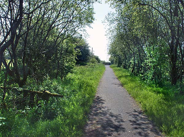 The site of the Pant Glas station goods siding looking south on 25 May 2012. The siding was located to the left of the path which follows the route of the line. Photo by Paul Wright