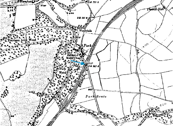 Location: | About 200 yd S of Park village where an unclassified road crosses over the railway by a bridge. Passengers joined and left the trains on either side of the bridge. |