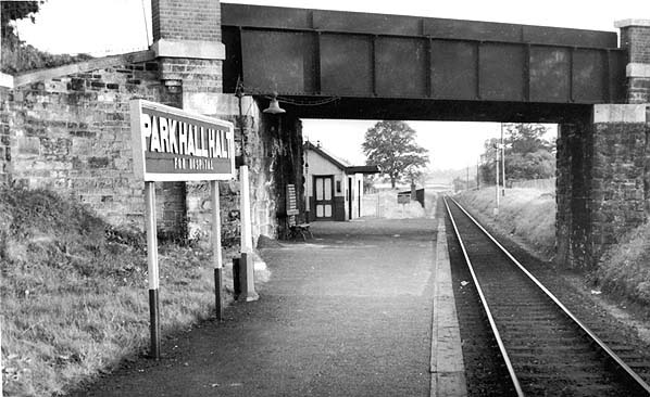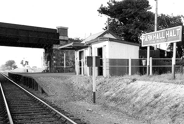 At the time of opening the halt had a short platform and a simple, corrugated iron pent-roof waiting shelter (as seen in the photo above). It had a large nameboard which read ‘Park Hall Halt for Hospital’. There was also an oil lamp.