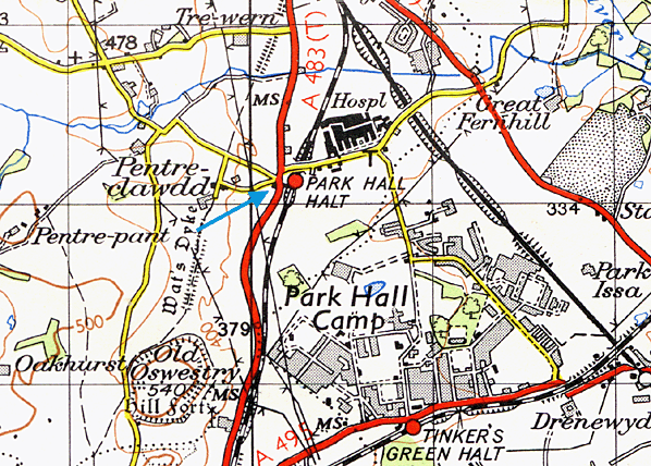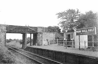During the Great War a field hospital was developed to the east of the line, south of Gobowen. In 1921 the facility was developed as the Shropshire Orthopaedic Hospital and on 5 July 1926 the GWR opened Park Hall Halt to serve it.